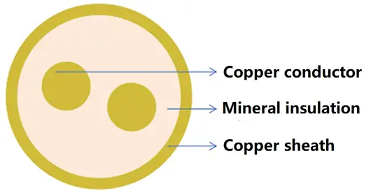 Az ásványi szigetelésű kábelek rézvezetőből, magnézium-oxid por ásványi szigetelésből és rézköpenyből állnak. Ha olyan gyárakban használnak kábeleket, ahol a réz korrozív, a legkülső polivinil-klorid (PVC) réteg is hozzáadható. Azokban az épületekben vagy földalatti helyeken, ahol a kábel esztétikája vagy könnyű megközelíthetősége fontos, halogénmentes, füstmentes külső köpeny is hozzáadható.