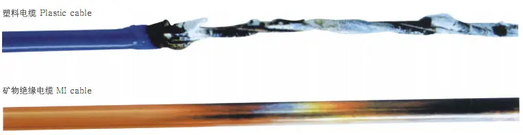Az ásványi szigetelésű kábelek gyakorlatilag nem mutattak változást a tűzállósági vizsgálat után. A szerves szigetelésű kábelek nyilvánvaló elszenesedést mutattak.